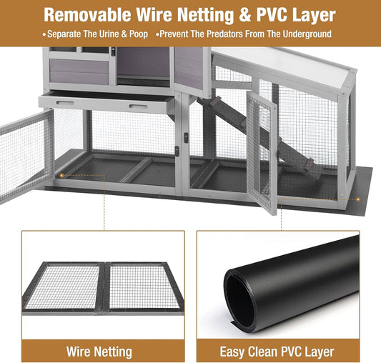 GUTINNEEN Rabbit Hutch for Outdoor Indoor Use, Bunny Cage with PVC Layer and Bottom Wire Netting, Wooden Chicken Coop Rabbit House with UV Roof, Leakproof Tray, Run