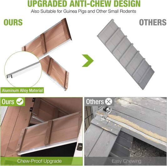 Bunny Cage Indoor and Outdoor Rabbit Hutch with Casters Waterproof Roof, Pull Out Tray from Back and Front 61.2" L x 22.6" W x 33.5" H