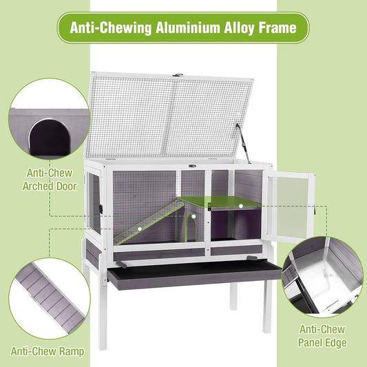 Aivituvin Rabbit Hutch Indoor Bunny Cage Outdoor Bunny House with Wire Floor Leakproof Plastic Tray