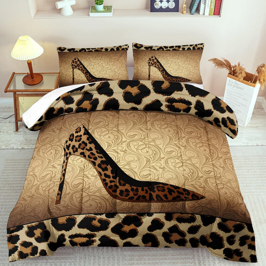Leopard Comforter Set King Girls,Sexy High Heel Comforter for Women,Leopard Print Bedding Set King Adult,High Heel Quilt Bedroom Decor,African Animal Print Bedding Quilt