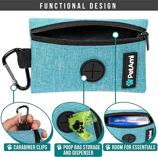 PetAmi Dog Poop Bag Holder for Leash, Dog Waste Bag Dispenser with Clip, Doggy Walking Accessories with Trash Bag Roll, Blue 1 Pack