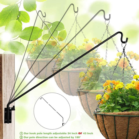 MIXXIDEA 2 Packs Heavy Duty Extended Reach Wall Mounted Deck Hook Wall Pole, Wall Bracket Direction and Length Adjustable Plant Bracket for Bird Feeders, Planters, Suet Baskets, Lanterns, Wind Chimes