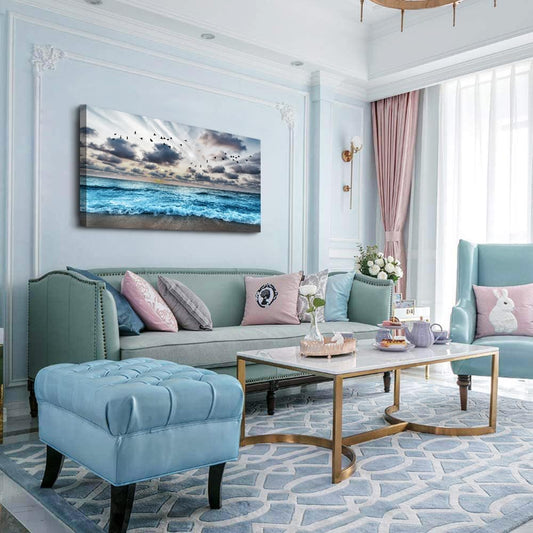 Lapremoly Large Canvas Wall Decor For Office Framed Wall Art For Living Room Blue Beach Painting Ocean Sea Waves Wall Pictures Bedroom Home Decorations Prints Posters Mural Artwork Ready to hang