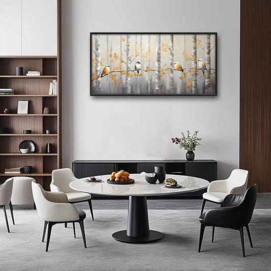 Quorin Bird Large Wall Art Abstract Forest Birds Pictures Wall Decor Yellow Woods Branches Tree Canvas Print Painting Artwork for Bathroom Living Room Bedroom 60L x 30W