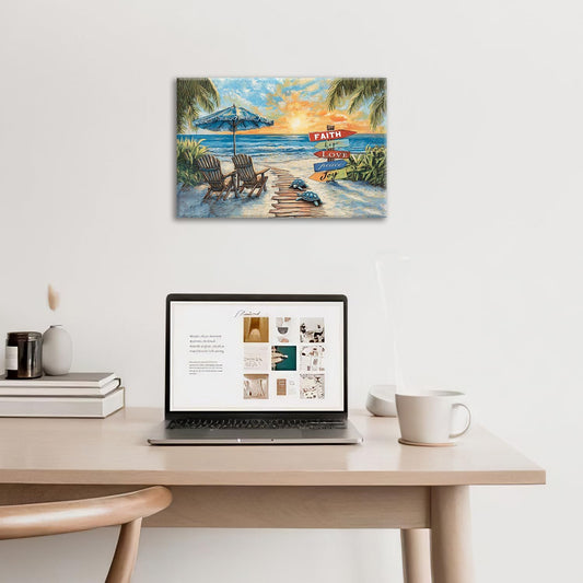 Beach Ocean Bathroom Pictures Wall Art, Seaside Coastal Bathroom Wall Decor, Sunrise Framed Painting Canvas Artwork for Bedroom Living Room Decorations 24"L x 16"W