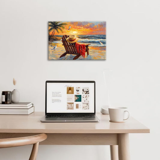 Beach Coastal Bathroom Pictures Wall Art, Seaside Ocean Bathroom Wall Decor, Sunrise Palm Framed Painting Canvas Artwork for Bedroom Living Room Decorations 24"L x 16"W