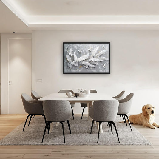 Quorin Feather Dove Bird Large Wall Art White Gray Holy Wings Pictures Peaceful Birds Flying Wall Decor Canvas Print Painting Artwork for Bathroom Living Room Bedroom 36L x 24W