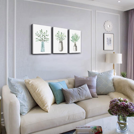 AHUASJART Canvas Wall Art Paintings For Kitchen Dining Room Large Size Wall Decor For Living Room Bedroom Wall Decoration Office Decor Green Leaf Vase Wall Pictures Artwork For Home Walls 3 Piece