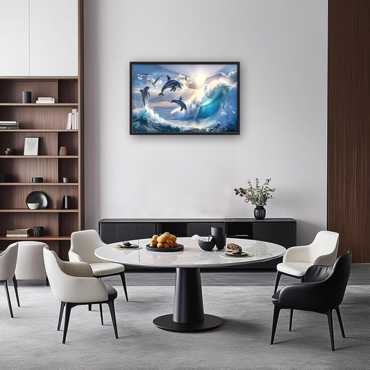 Dolphin Seagull Large Wall Art Sea Ocean Waves Sunrise Pictures Wall Decor Nautical Coastal Canvas Print Painting Artwork for Bathroom Living Room Bedroom 36L" x 24W"