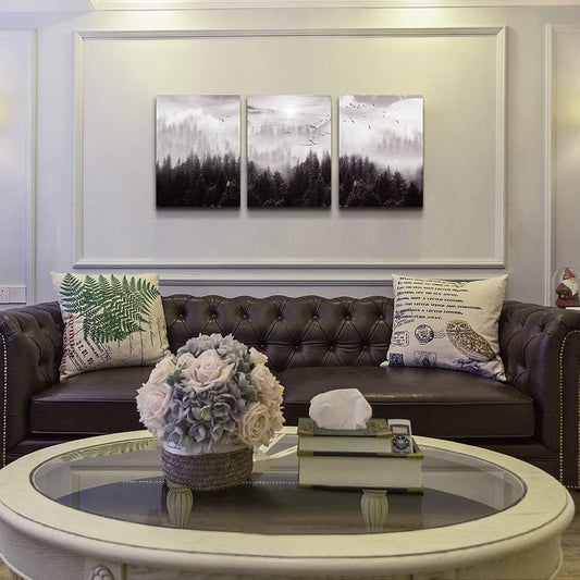 Large Size Canvas Wall Art For Living Room Boho Wall Decor For Bedroom Wall Decorations For Office Foggy Forest Trees Wall Paintings Scenery Wall Pictures Artwork Home Decoration 20" X 28" 3 Piece