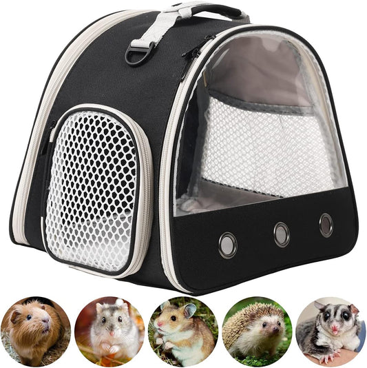 Bunny Carrier, Guinea Pig Carrier,Small Animal Carrier Backpack for Rabbit,Bearded Dragon, Lizard,Hamster,Kitten. Breathable Pet Travel Cage Bag Perfect for Vet Visits & Outdoor Adventures (Black)