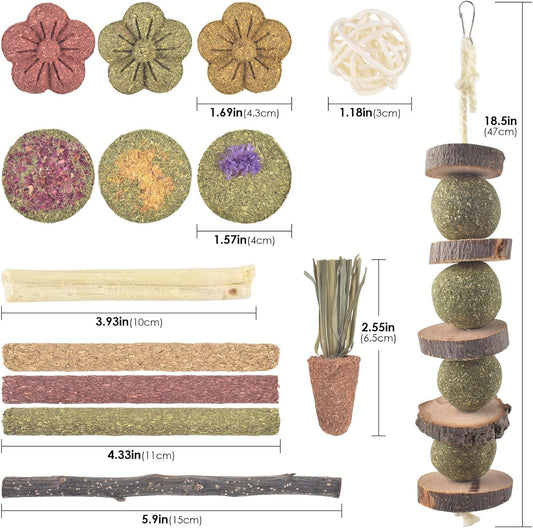 Grddaef Rabbit Toys, Guinea Pig Toys 25 Pcs Natural Timothy Hay Bunny Chews and Treats for Hamster Chinchilla Gerbil