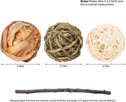9 Pcs Small Animals Play Balls Rolling Activity Chew Toys Gnawing Treats for Rabbits Guinea Pigs Chinchilla Bunny Natural Balls, Pet Cage Entertainment Accessories (9 Pcs)