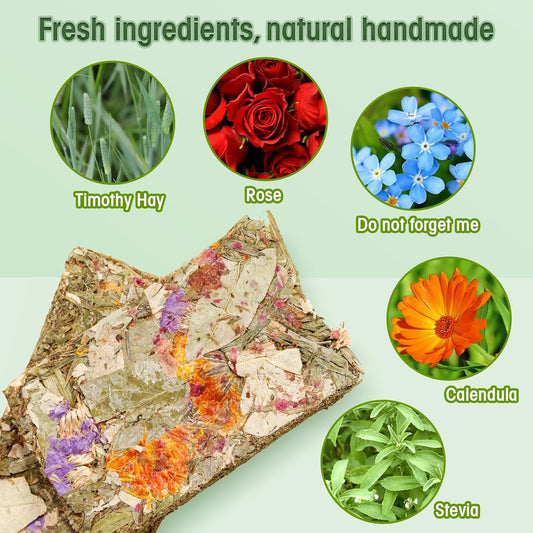Abizoo Rabbit Natural Treats,10Pcs Timothy Hay Toys Chips Bunny chew Toys with Herbal Flowers Guinea Pig Treats for Hamster Chinchillas Gerbils Rats Small Animals Teeth Care Crisp Snacks