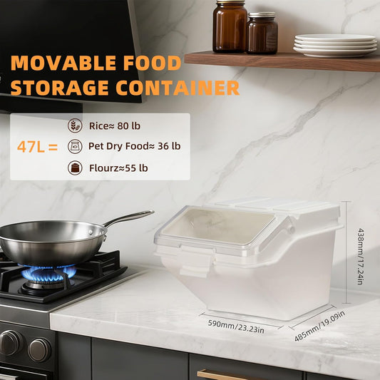 88LB Airtight Flour Storage Container With Scoop for Dry Food, Sugar, Baking Supplies,Rice.BPA Free Ingredient Storage Bin,Pet Food Storage Container Dog Cat Birds Food Bin (88 LB)