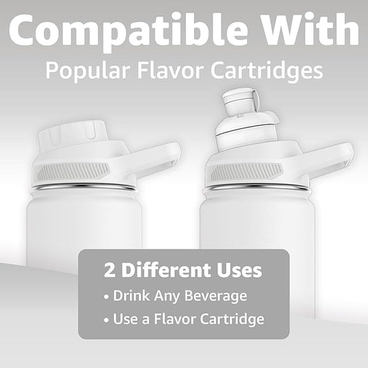Chill Oasis Water Bottle | Compatible With Popular Flavor Cartridges | BPA Free, Leak Proof, Double-Walled Vacuum Insulated Stainless Steel, and Dishwasher Safe | Cold for 24 Hours (White, 22oz)