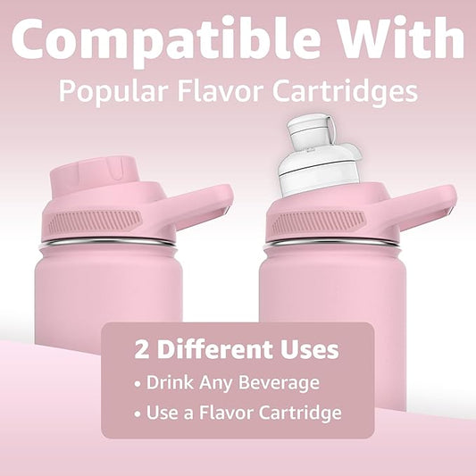Chill Oasis Water Bottle | Compatible With Popular Flavor Cartridges | BPA Free, Leak Proof, Double-Walled Vacuum Insulated Stainless Steel, and Dishwasher Safe | Cold for 24 Hours (Pink, 32oz)