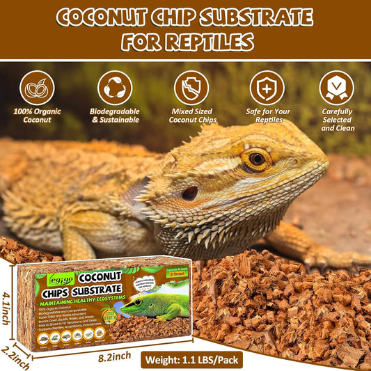 Legigo 2 Pack Coconut Chip Substrate for Reptiles, Natural Coco Husk Chip Reptiles Bedding, Compressed Coconut Chip Substrate for Snake, Tortoise, Ball Python, Gecko, Lizard Terrarium Tanks