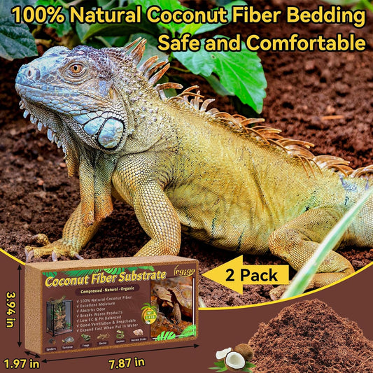 Legigo 2 Pack Compressed Coconut Fiber Substrate - 100% Organic Coconut Fiber Brick Bedding for Reptiles, Natural Coco Husk Substrate Terrarium Bedding for Snake, Hermit Crabs, Frogs, Tortoise, Gecko