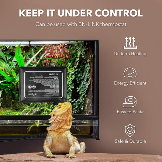 BN-LINK Reptile Heating Pad 6"X8" with Adjust Knob, Adjustable Temperature Under Tank Heater for Reptiles, Indoor Terraium Heating Mat for Turtles, Lizard, Snakes, Frogs, and Other Reptiles