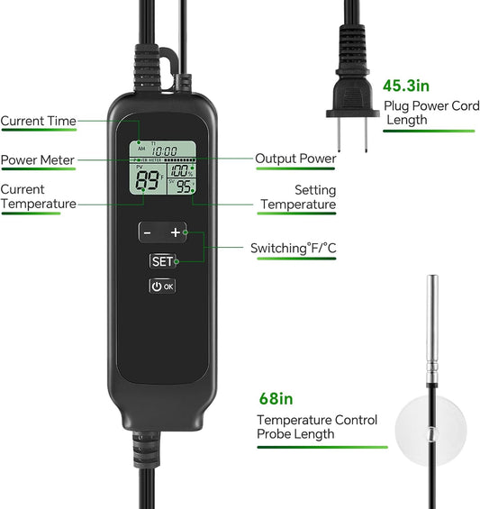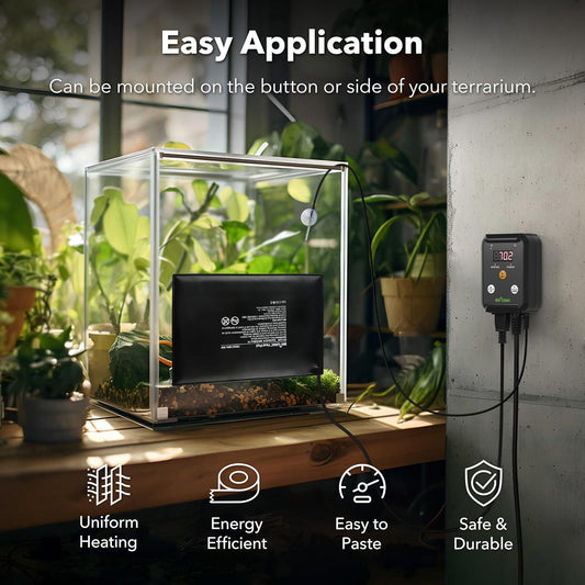 Tikaton Reptile Heating Pad and Digital Thermostat Combo Set, Under Tank Heater for 10-20gal/30-40gal Tank, Terrarium Heat Mat for Turtle/Snake/Lizard/Frog/Spider/Plant Box
