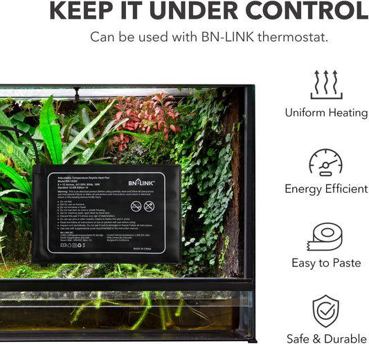 BN-LINK Reptile Heating Pad 8" X 12" with Adjust Knob, Adjustable Temperature Electric Indoor Under Tank Terrarium Heating Mat Waterproof for Turtles, Lizards, Frogs, and Other Reptiles