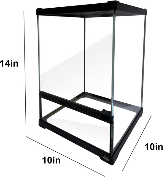 Reptile Glass Terrarium Tank 10 * 10 * 14in, Full View with Front Opening Door,Amphibians Enclosure Habitat Cage for Leopard Gecko Tarantula Young Lizard Hermit Crab Frog Insects Breeding