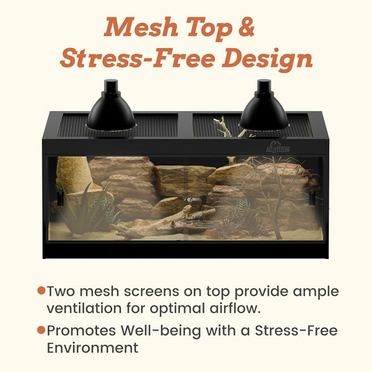 Prolee Bearded Dragon Tank, Reptile Enclosure, Snake Tank, Reptile Terrarium, Built-in Light Fixtures with Switch, (30 Gallon, 32" Long, Clear Acrylic Roof)