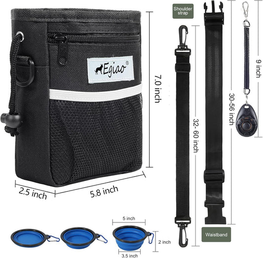 Dog Treat Pouch with Drawstring Closure, Puppy Training Bag, Built-in Pet Poop Bag Dispenser, Waist Belt Clip, 3 Ways to Wear