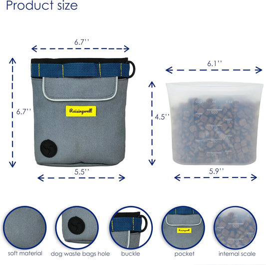 Dog Treat Pouch for Pet Walking and Training with Clicker 2 Cup Silicone Bag Small Fanny Pack Holder for Puppy Snack Dispenser Kit for Leash and Outdoor Use (Gray)