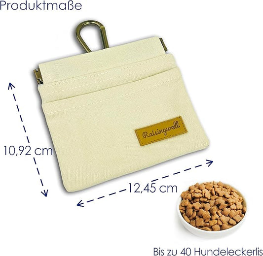 Dog Treat Pouch, Lvory Pocket Sized Pet Training Pouch, Cotton Fabric, Hand Free Dog Walking Bag with Carabiner, Self-Closing Pet Feed Snack Reward, for Puppy Travel or Outdoor Use
