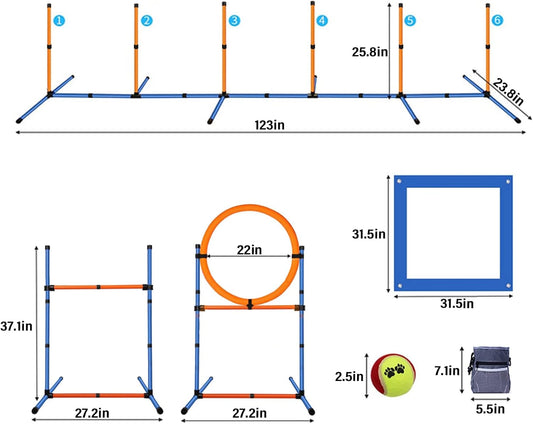 Dog Agility Equipment Set, Obstacle Courses Training Starter Kit Includes Adjustable High Jump Hurdle, Hoop, Weave Poles, Pause Box, Treat Pouch with Easy Carry Bag