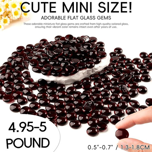 5 LB Dark Red Glass Marbles, Mini Flat Glass Beads for Vase Fillers, Floral Bottom Mancala Gems Pebbles Fish Tank Rocks for Table Aquarium,Home Decor Art Craft Supplies(0.5"~0.7")