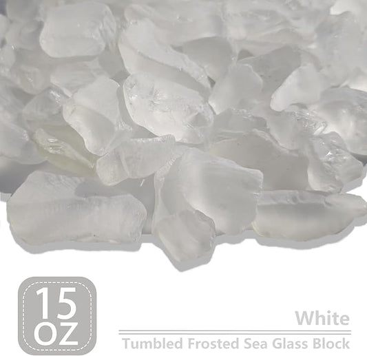 Sea Glass Block - 1LB White Frosted Sea Glass - Vase Filler and Aquarium Ornament, DIY Craft Supplies for Art, Sea Glass Decor, Beach Weddings, and Home Decor