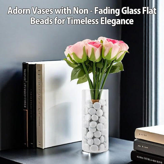 White Glass Marbles, 0.97 LB Flat Glass Beads for Vases, Mosaic Gem Pebbles for Aquarium Decor, Floral Arrangements Vase Filler Smooth Mancala Stones and Crafts Approx. 80-100PCS