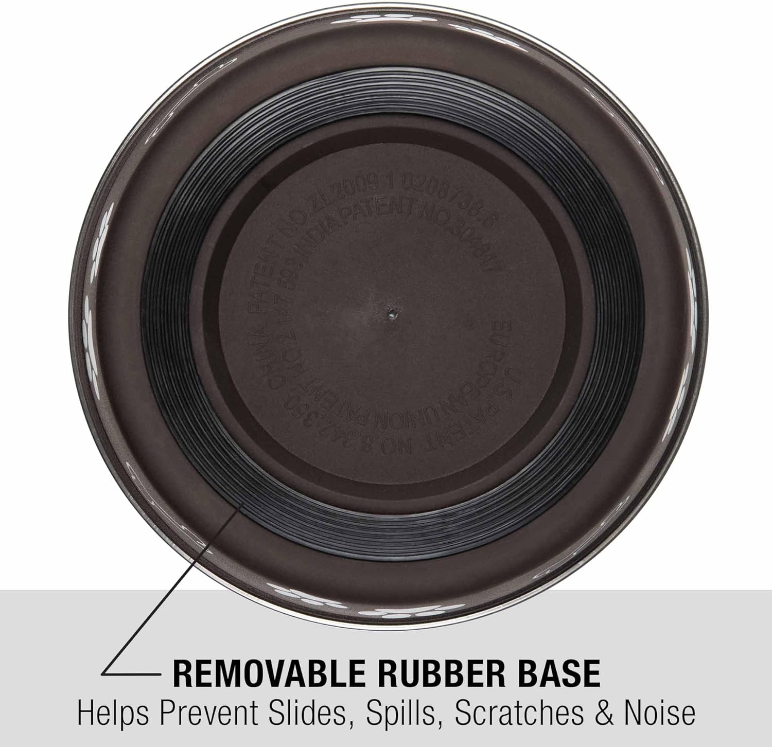 - Removable soy-based rubber ring prevents spills and reduces noise