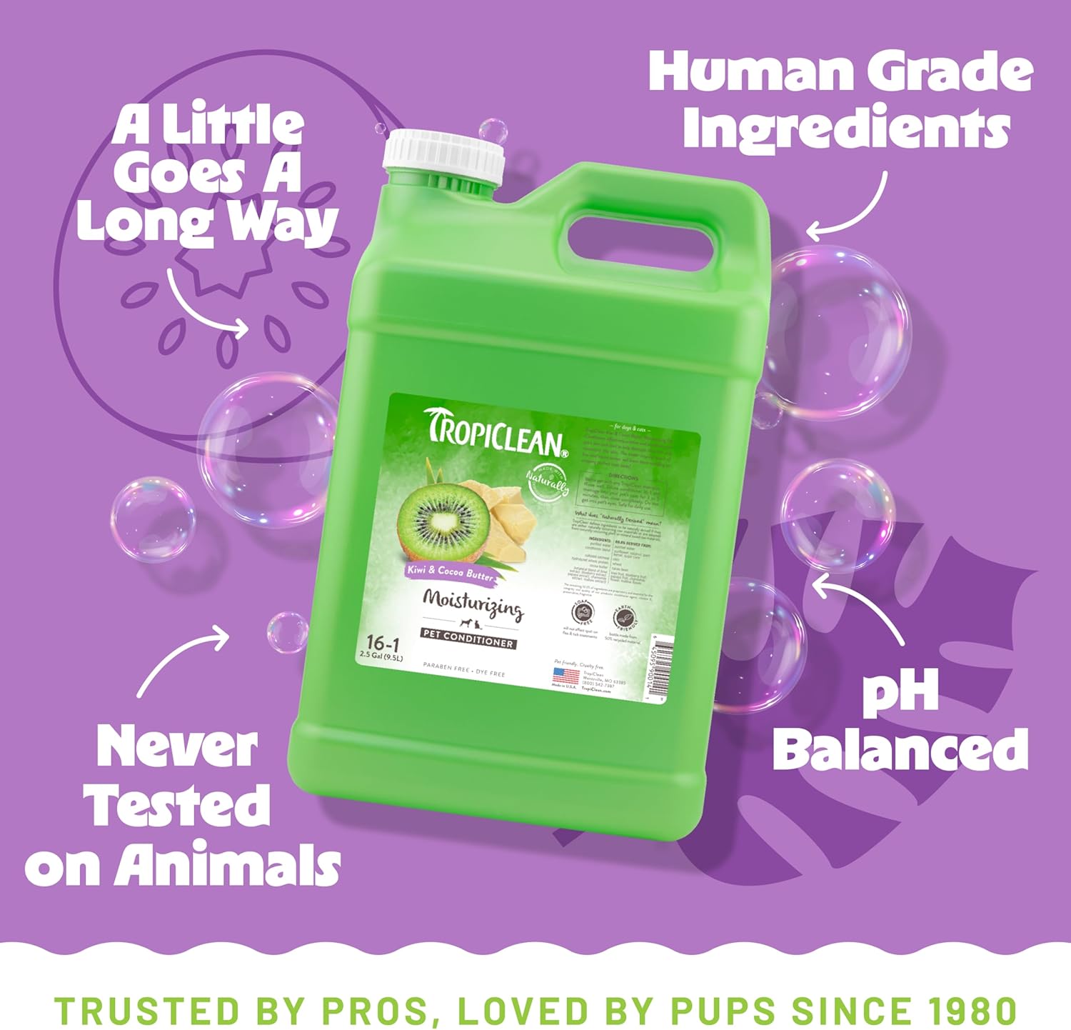 TropiClean Dog Conditioner, Professional Detangling & Moisturizing Conditioner, Puppy Safe, Made in the USA, Kiwi & Cocoa Butter Scent, 2.5 Gallon