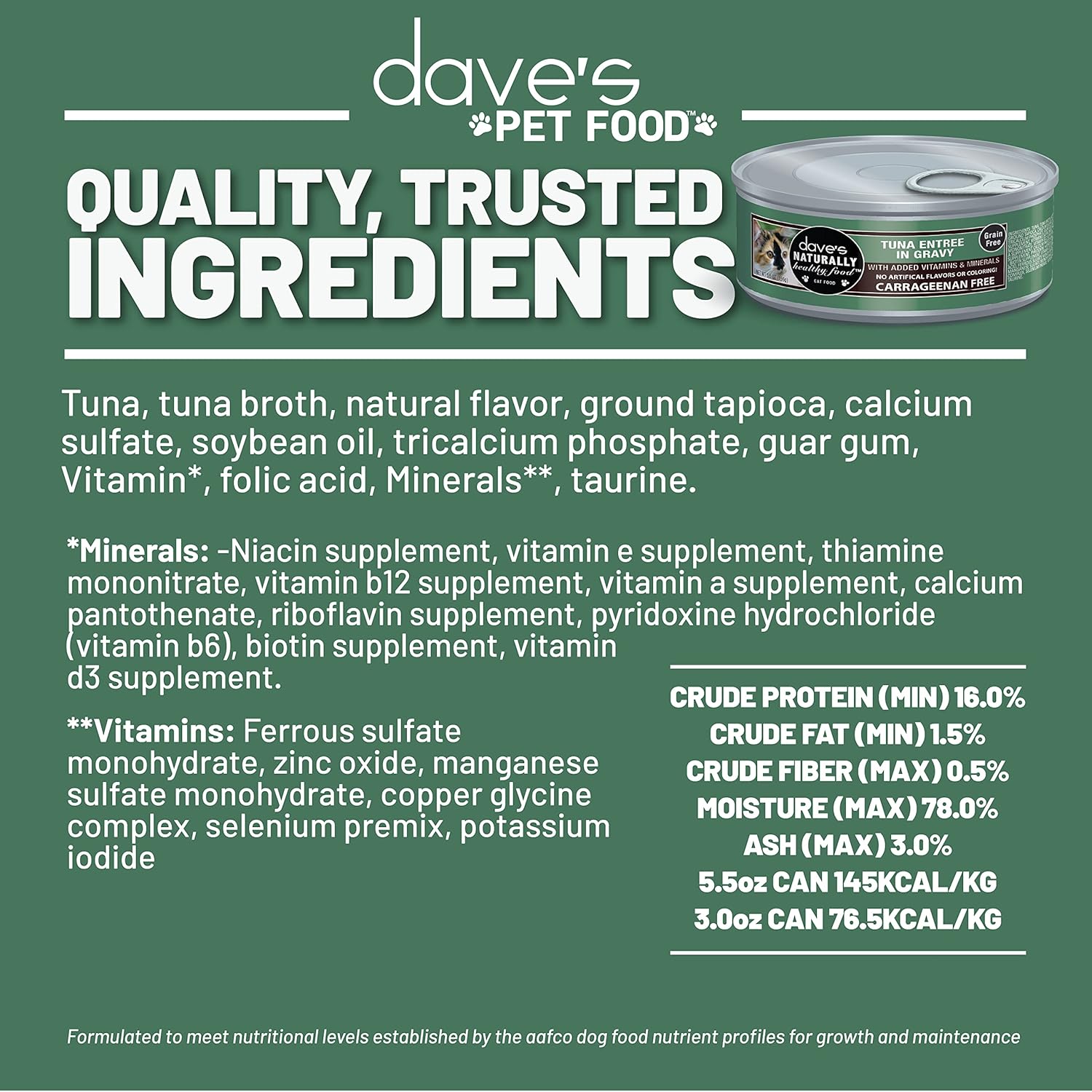 Dave's Pet Food Grain Free Wet Cat Food (Tuna Entrée in Gravy), Naturally Healthy Canned, Added Vitamins & Minerals, Wheat & Gluten-Free, 3 oz (24 Pack)