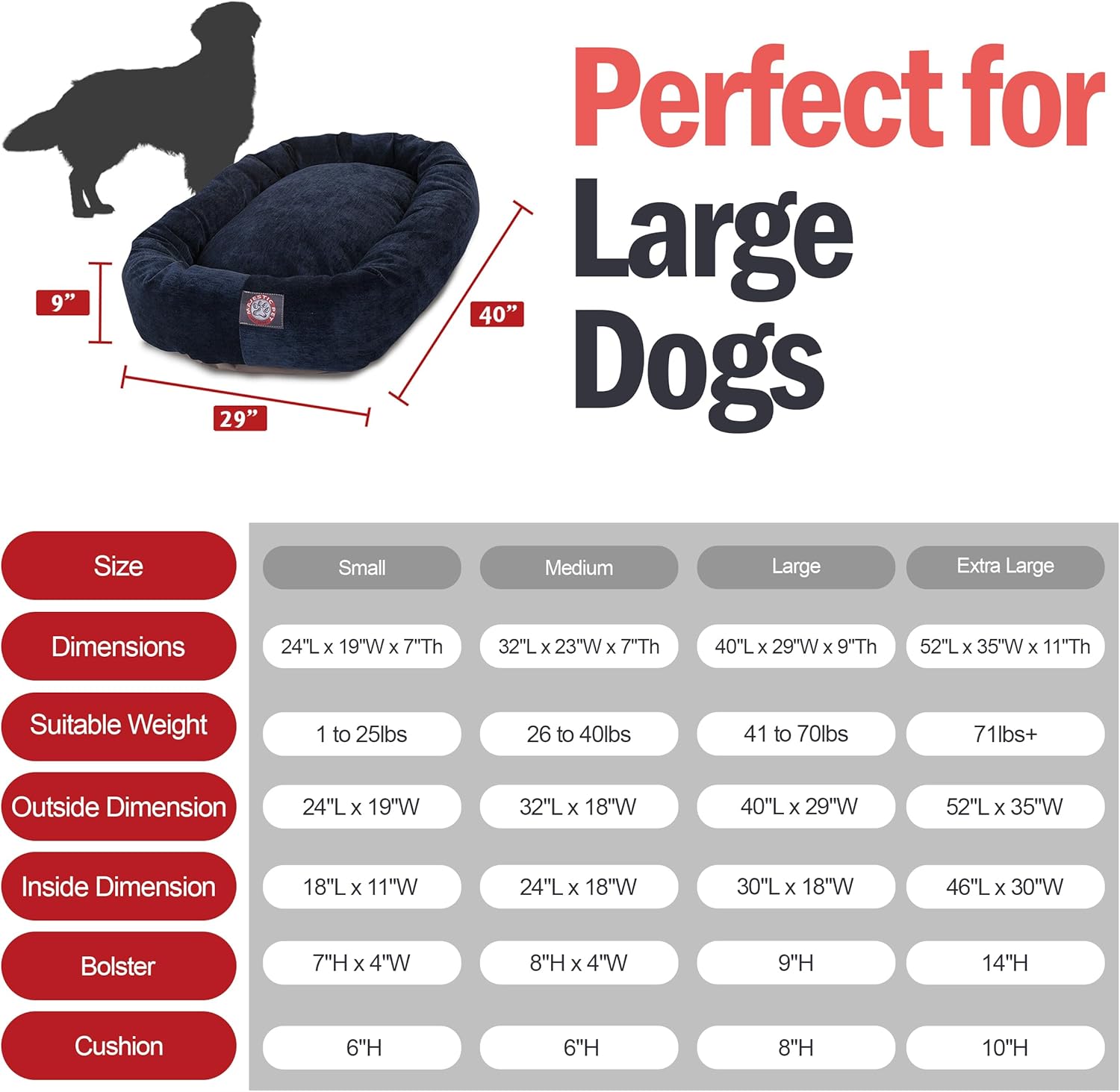 Majestic Pet 40 Inch Micro Velvet Calming Dog Bed Washable – Cozy Soft Round Dog Bed with Spine for Head Support - Fluffy Donut Dog Bed 40x29x9 (inch) – Round Pet Bed Large – Navy