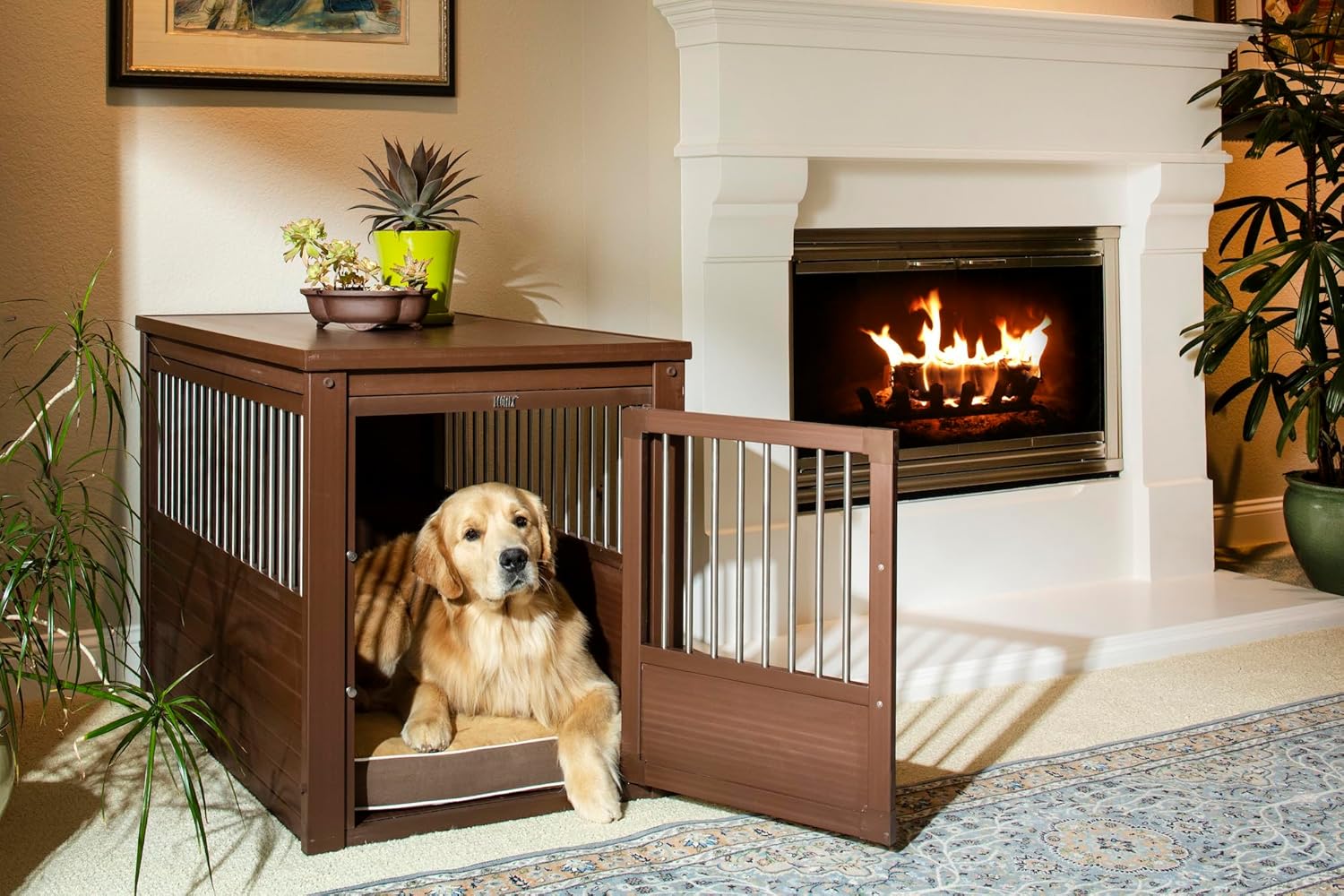 New Age Pet ECOFLEX Dog Crate End Table - Furniture-Style Pet Crate for Crate Trained Dogs - Stainless Steel Tubing & a Latched Closure - 10 Year Manufacturer's Warranty, X-Large, Brown