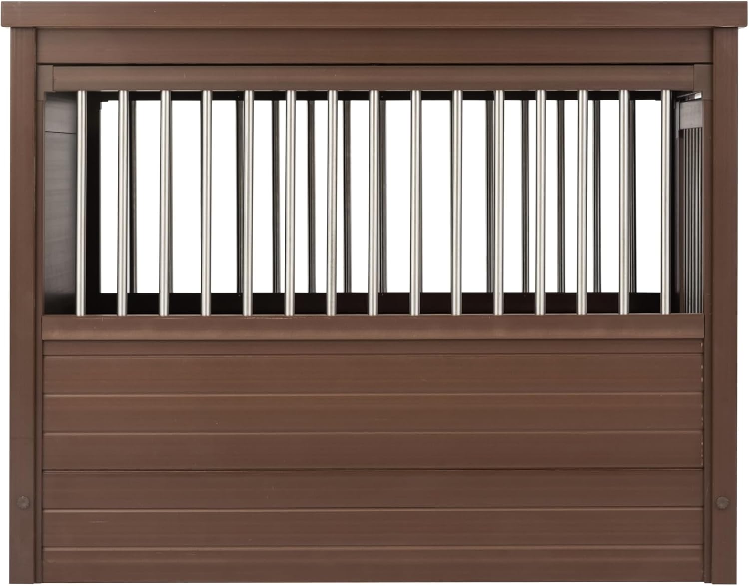 New Age Pet ECOFLEX Dog Crate End Table - Durable Wood-Plastic Composite with Stainless Steel Latch, Easy Assembly, Ideal for Dogs Up to 80lbs, Russet Brown, Large Size