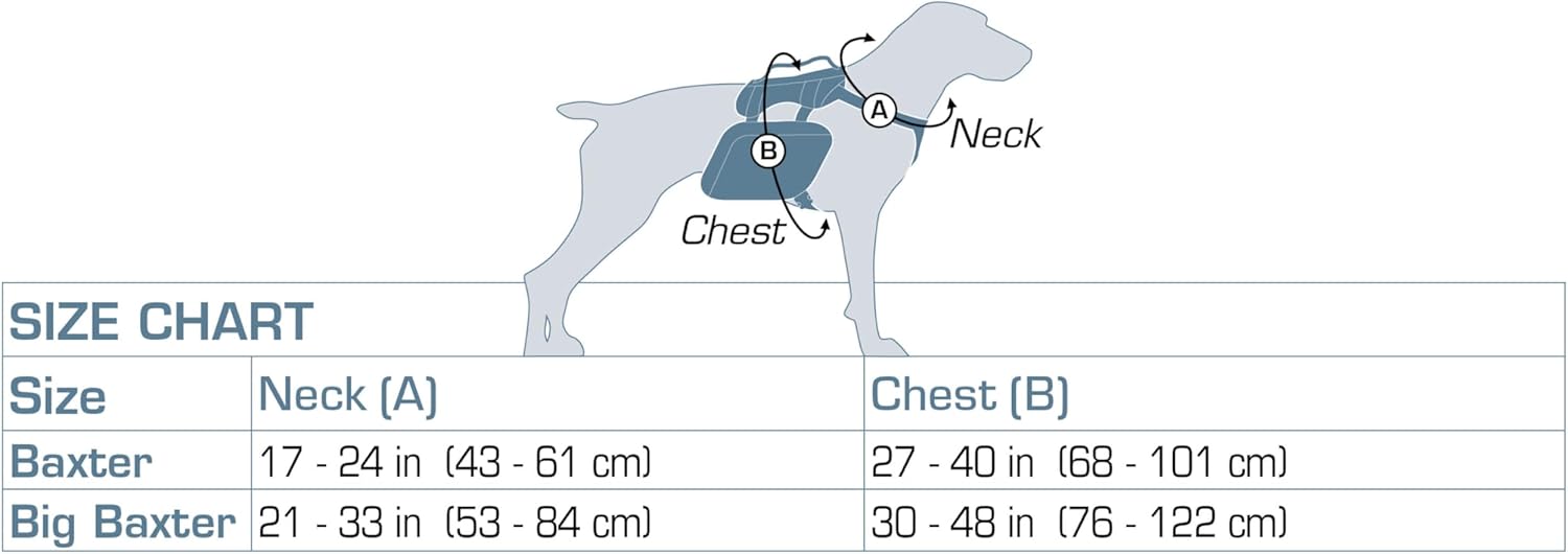 - Two saddle bags provide extra space to store your dog's travel essentials; Baxter size fits 3.75L, and Big Baxter fits 7.5L