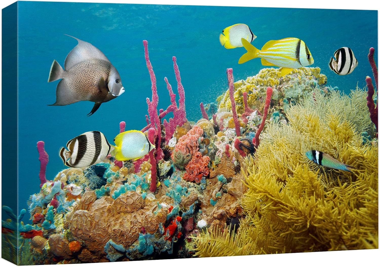 wall26 Canvas Print Wall Art Deep Sea Marine Fish with Coral Reef Nature Ocean Photography Realism Nautical Scenic Relax/Calm Multicolor Ultra for Living Room, Bedroom, Office - 12"x18"