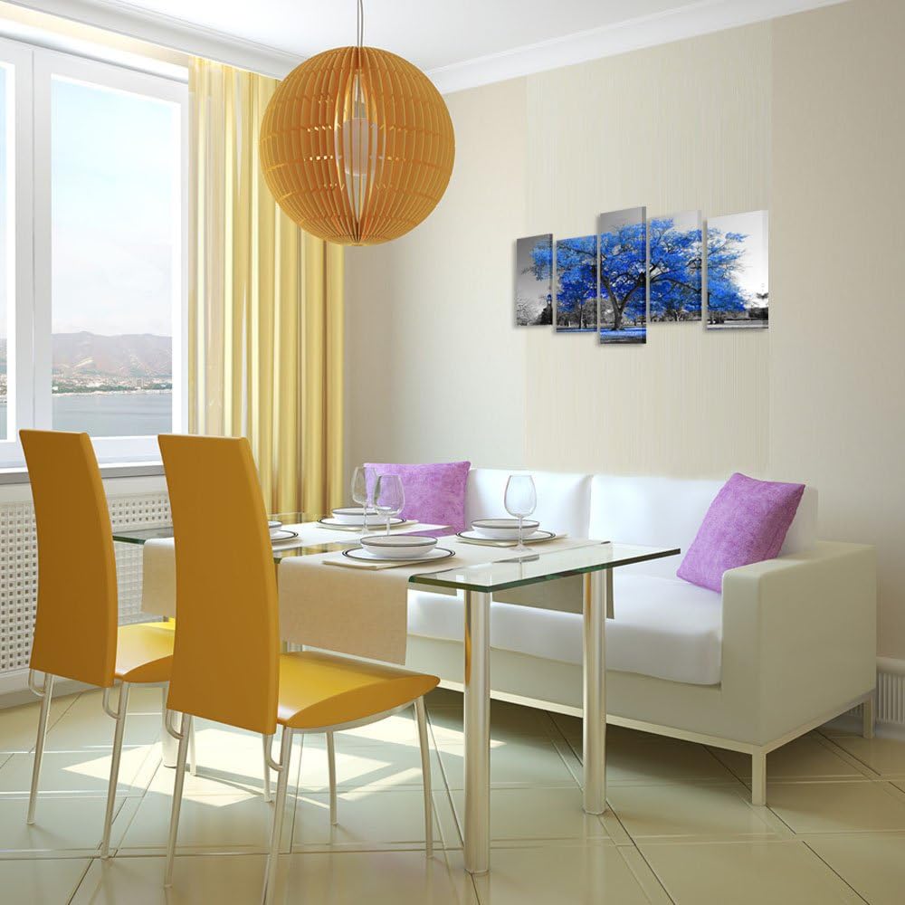 KREATIVE ARTS Canvas Print Wall Art Painting Contemporary Blue Tree In Black And White Style Fall Landscape Picture Modern Giclee Stretched And Framed Artwork