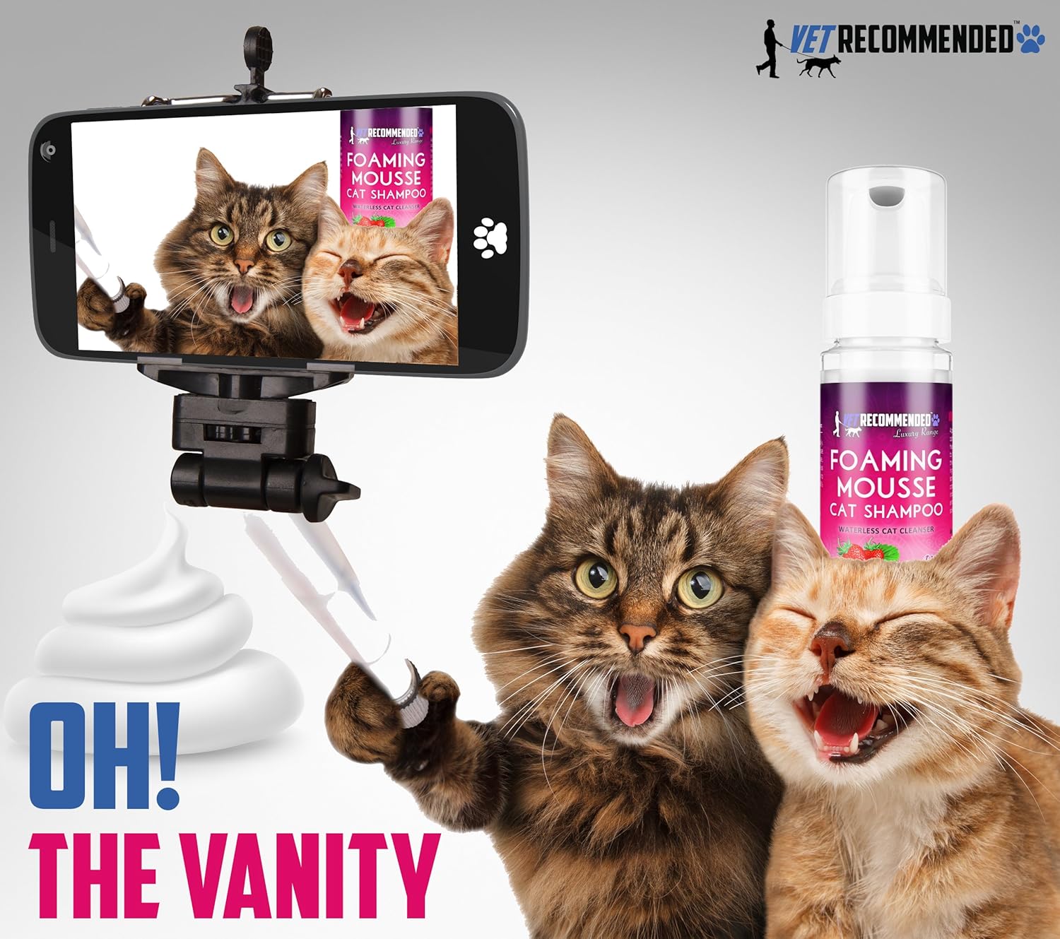 - The No-Rinse Foam Mousse, Leave-In Formula: Our natural cat shampoo will remove pet odors in a jiffy with a quick & easy solution for cats that hate to be soaked. Use with spot on flea treatments. Use our cat dry shampoo as needed to moisturize skin & coat. Works better than regular cat dander wipes for allergy sufferers.