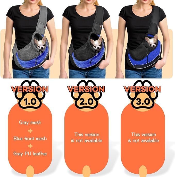YUDODO Pet Sling Carrier for Small Dogs & Cats – Hands-Free Puppy Carrier with Safety Hook, Large Zipper Pocket, Soft Breathable Mesh, Adjustable Strap & Reflective Strip (Blue 1.0 S)