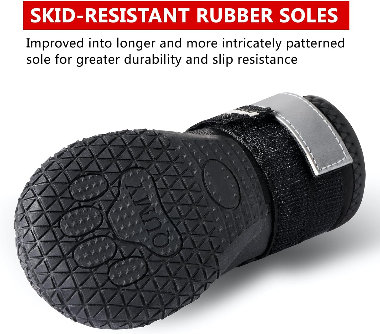 - RUGGED: Tough slip-proof sole of dog boots provides stability and traction, protection from rough terrain