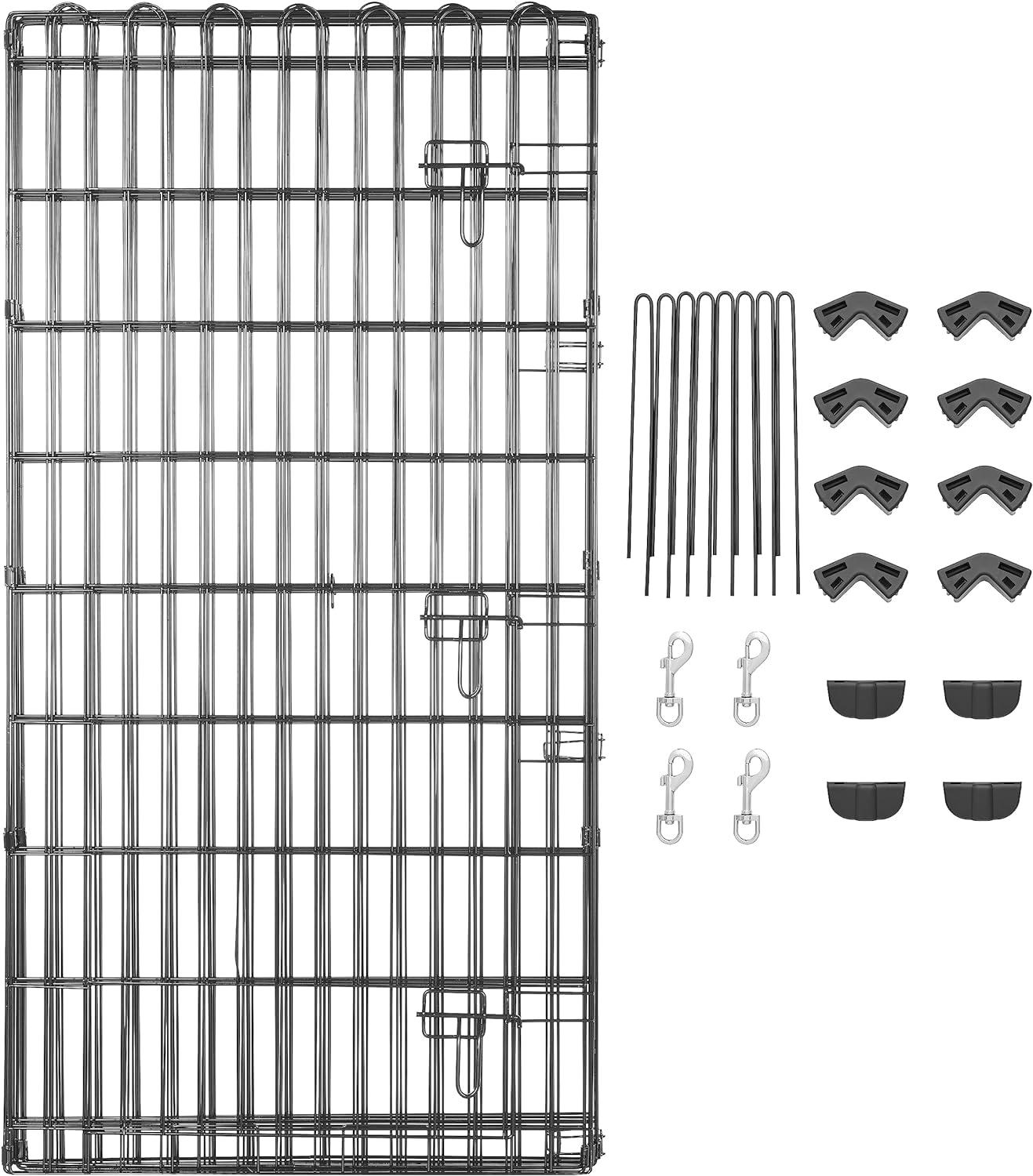 Amazon Basics Foldable Octagonal Metal Exercise Dog Playpen - Indoor/Outdoor, Single Door, Extra Large (8 Panels, 24 x 48), Easy to assemble and store customize, 48" - X-Large, Black
