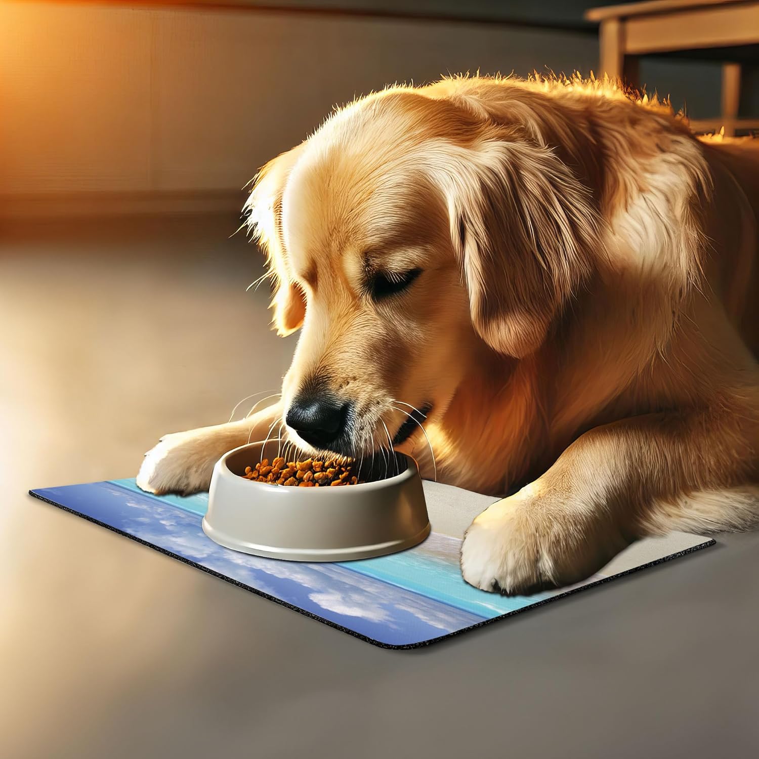 - Features - Fun prints and long-lasting colors. Find any theme and color you want to match your room decor or your pet’s personality. This pet feeding mat can even feature your cat's or dog’s favorite item or design, adding a cheerful touch to your pet’s feeding area.