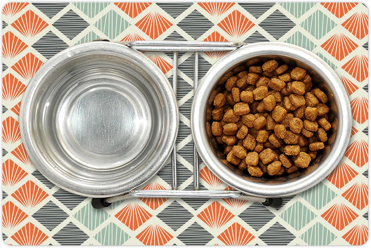 Lunarable Geometric Pet Mat for Food and Water, Pop Art Style Retro Rhombus Fractal Stripes Nostalgic Graphic Print, Non-Slip Rubber Mat for Dogs and Cats, 18" X 12", Green Orange